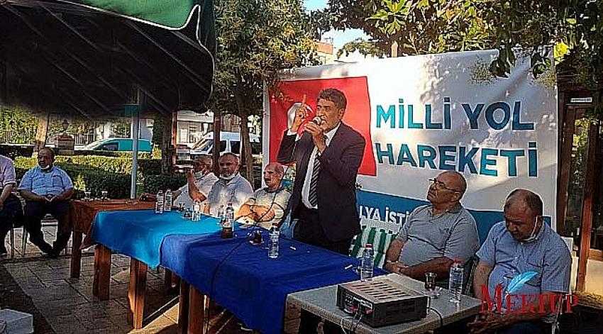 Isparta İlinden sonra Antalya’da buluşma gerçekleştiren Milli Yol Hareketi’nde iddialı söylemler dikkat çekiyor. Antalya’daki Toplantıda konuşma yapan Milli Yol Hareketi Genel Başkanı Remzi Çayır; “Paramız yok, Arkamızda Dayımız yok ancak Allah ve Milletimiz var. Kurutuluş Savaşı ve İstiklal harbinde Dedelerimizin, Nenelerimizin neyi vardı? İman gücü, birlik ve beraberlikleri vardı. O Halde bizde kimseleri arkamıza almadan, Sadece Rabbimize ve Milletimize güvenerek bu yola çıktık” dedi