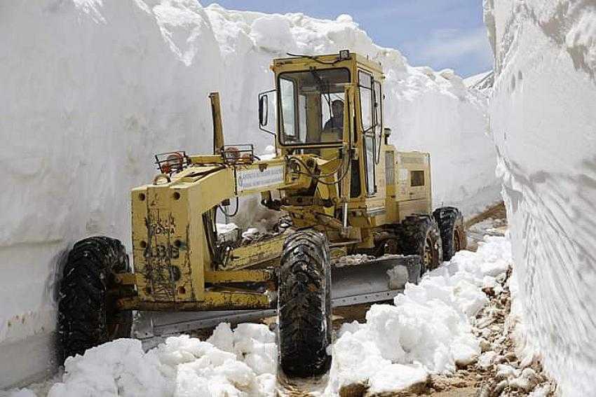 Antalya Büyükşehir Belediyesi, Gündoğmuş İlçesinin 2 bin 500 metre rakımlı Söbüçimen Yaylası’nda yer yer 7-8 metreyi bulan karla kaplı yolları yaz aylarında yaylalara göçen hayvancıların ulaşımına açmak için çalışma yapıyor.