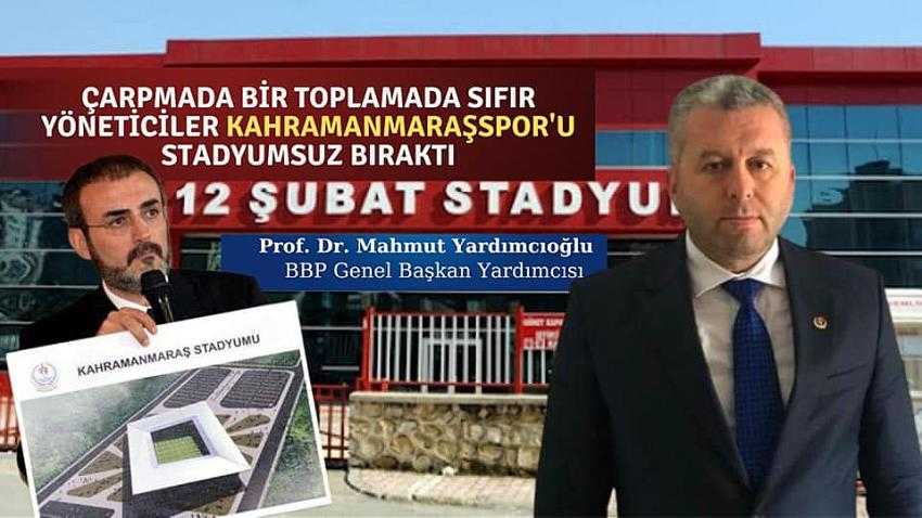 Kahramanmaraş’ta 12 Şubat Stadyumuna çürük raporu verilmesi ve Hanefi Mahçiçek Stadyumunun da güvenilir olmadığı gerekçesiyle diğer şehirlerde stadyum arayışına giren Kahramanmaraşspor’un sorununu BBP Genel Başkan Yardımcısı Prof. Dr. Mahmut Yardımcıoğlu dile getirdi. ''Milletvekilleri ne işe yarar'' diye özellikle vurgulayan Yardımcıoğlu, ''Çarpmada bir toplamada sıfır, kamu yöneticisini ne yapalım biz?'' dedi.