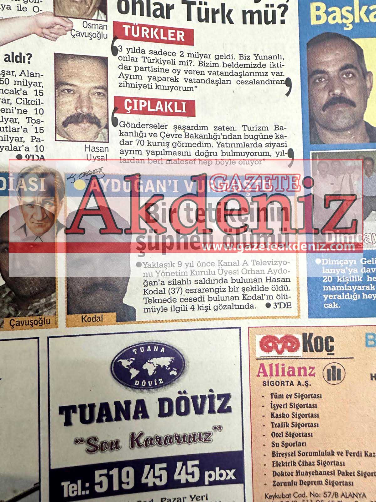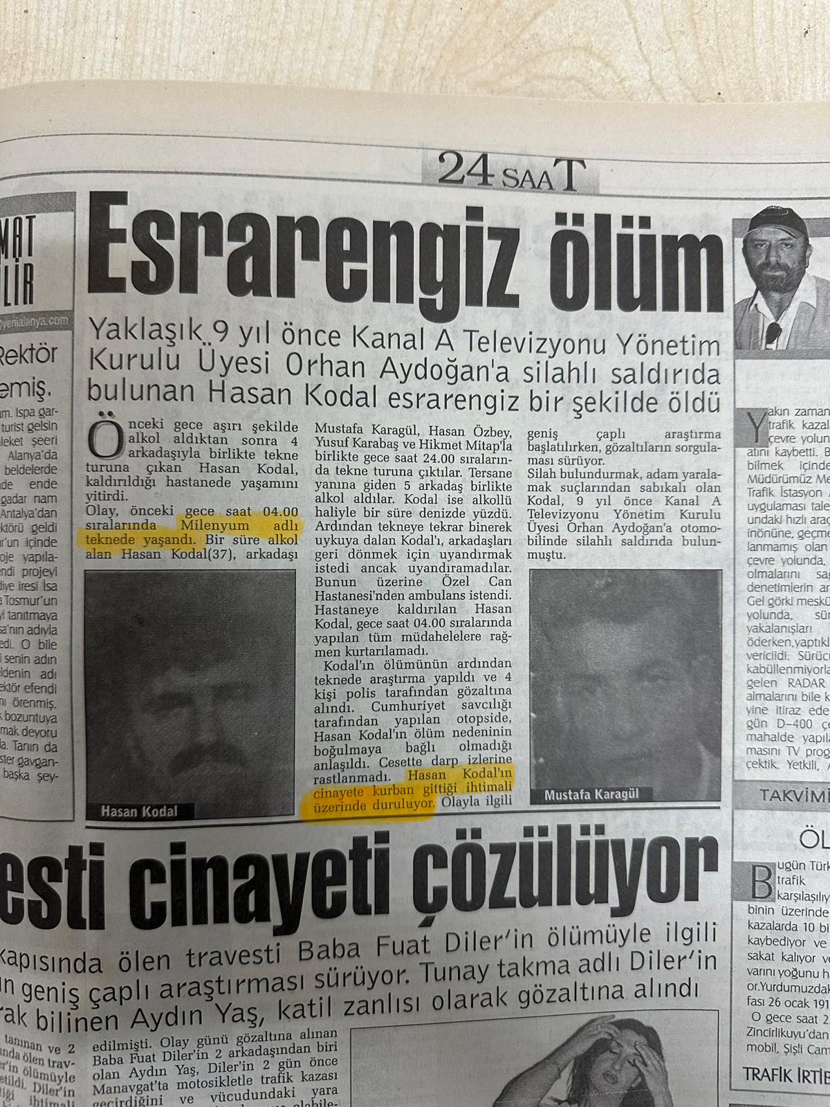 24 Temmuz 2002 tarihinde Milenyum isimli teknede hayatını kaybeden Hasan K.’nin ölümünün kalp krizi raporuyla örtbas edildiği iddiası