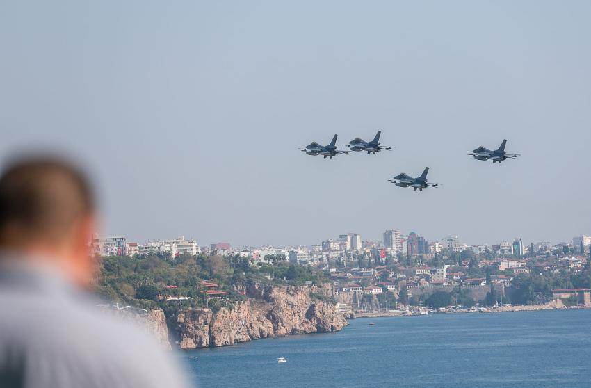Birçok tekne de denizden F-16’ların gösterisine ortak oldu. 30 dakikalık gösteri büyük bir beğeni topladı. 4 adet F-16 uçağı yaptıkları uçuşlar ile izleyenler alkış aldı. Gösterinin sonunda 4 F-16 pilotu sahilde kendilerini izleyen vatandaşları selamlayarak Antalya semalarından ayrıldı. Daha sonra ise Sahil Güvenlik ve Polis helikopterleri kısa bir gösteri uçuşu yaptı.