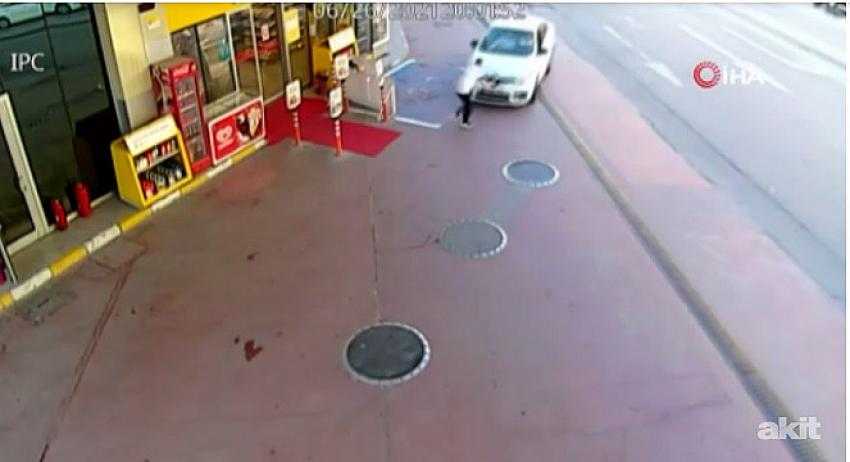 Olay geçtiğimiz Cumartesi akşamı Zeytinburnu Prof. Dr. Turan Güneş Caddesi’nde bir benzin istasyonunda yaşandı. Benzin istasyonuna hızla giren 34 DHB 770 plakalı otomobil, gazeteci Nasır Tasmanoğlu’na (29) çarptı. Sürücü olaydan sonra hiç bir şey olmamış gibi kaçtı. Çarpmanın etkisiyle hafif yaralanan gazeteciye benzin istasyonunda çalışanlar yardım etti. O anlar kameraya yansıdı.