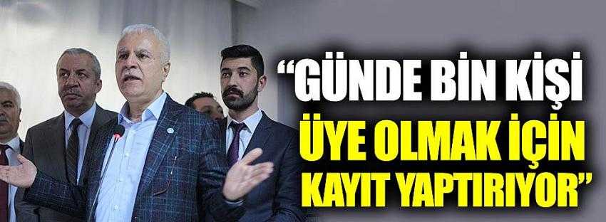 "Bu konuda seferberlik halindeyiz. Çünkü üye yapmak demek, sahada olmak demektir. Bir kişiyi üye yapmak, siyasi parti faaliyetidir. Onun için bunu çok ciddiye alıyoruz ve önemsiyoruz. Bugün itibarıyla 278 bin üyemiz olmuş. Yani neredeyse günde bin üye partimize kayıt yaptırıyor. İnanılmaz bir yükselişin içerisindeyiz. Milletin teveccühü bize dönmüş vaziyette. Bunu devam ettireceğiz. Yıl sonunda 400 bini buluruz diye hesaplamıştık, böyle gidersek onu da geçebiliriz. 50 yıllık partilerin 400-450 bin üyesi olduğu düşünüldüğünde 2 yıllık bir partinin nasıl milletiyle bütünleşerek ve dik durarak hızlı bir şekilde yol alıp iktidara doğru yönelmiş olduğunu görmekten büyük bir mutluluk ve onur duyuyorum."