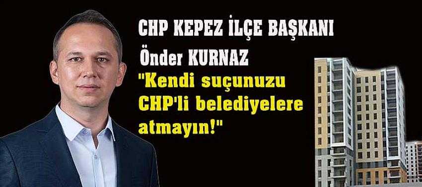 CHP Kepez İlçe Başkanı Önder Kurnaz, Kepezaltı Santral Mahallesi'nde yapılan kentsel dönüşüm projesi nedeniyle hükümet tarafından vatandaşlara ödenen kira yardımlarının kesilmesine ve sanki kira yardımını Büyükşehir Belediyesi kesmiş gibi kamuoyunda algı yaratılmaya çalışılmasına tepki göstererek, "Kendi suçunuzu CHP'li belediyelere atmayın!" dedi.
